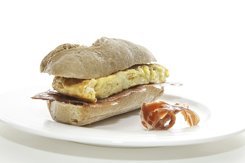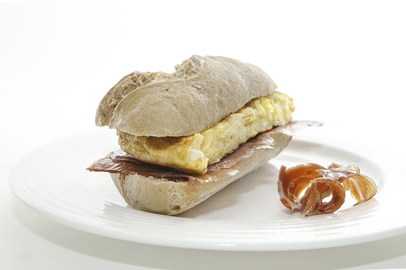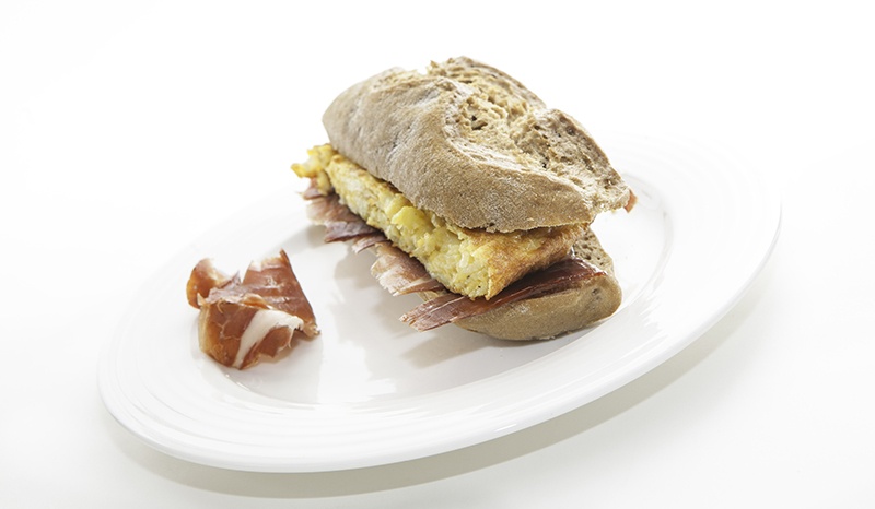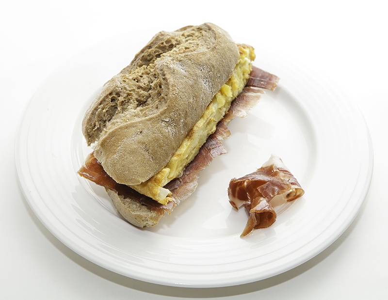 Ya tendremos listo nuestro fantástico Bocadillo en Pan de centeno, con tortilla de patatas, cebolla y jamón.