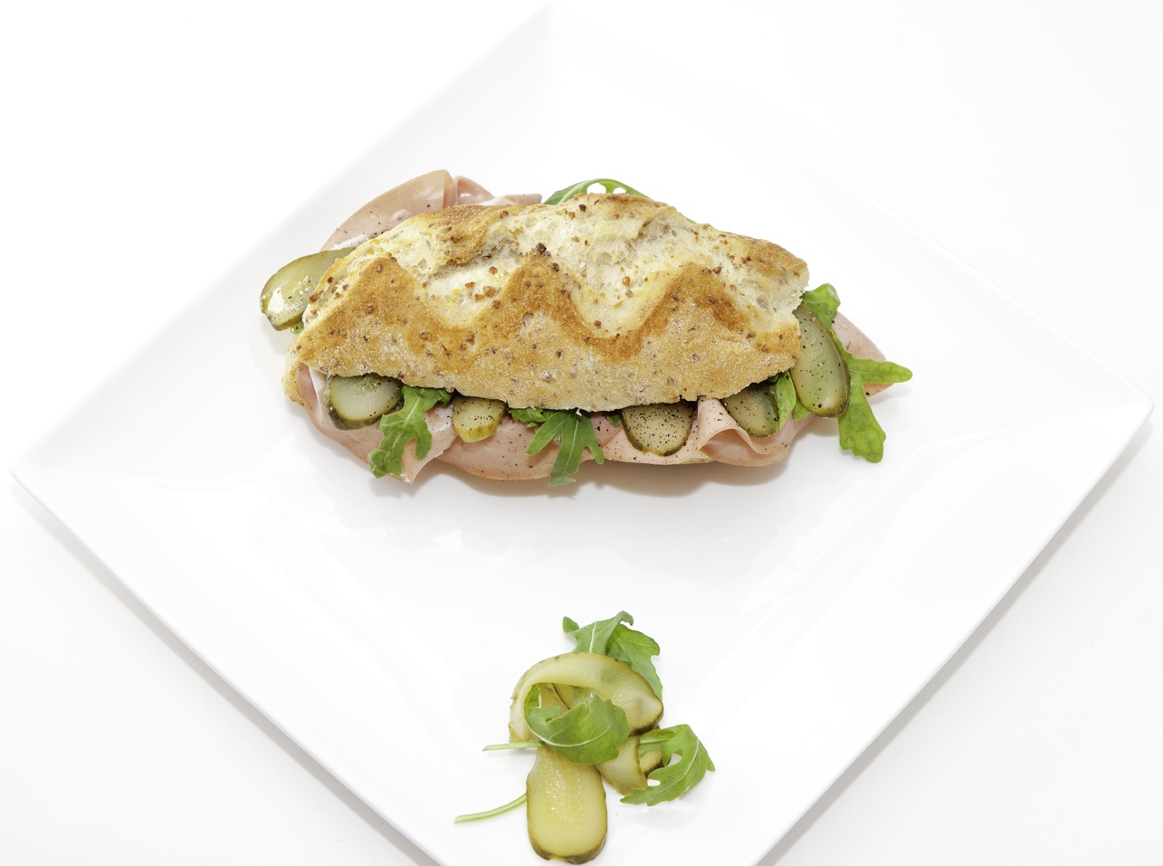 3 · Añadimos la rúcula y los pepinillos.