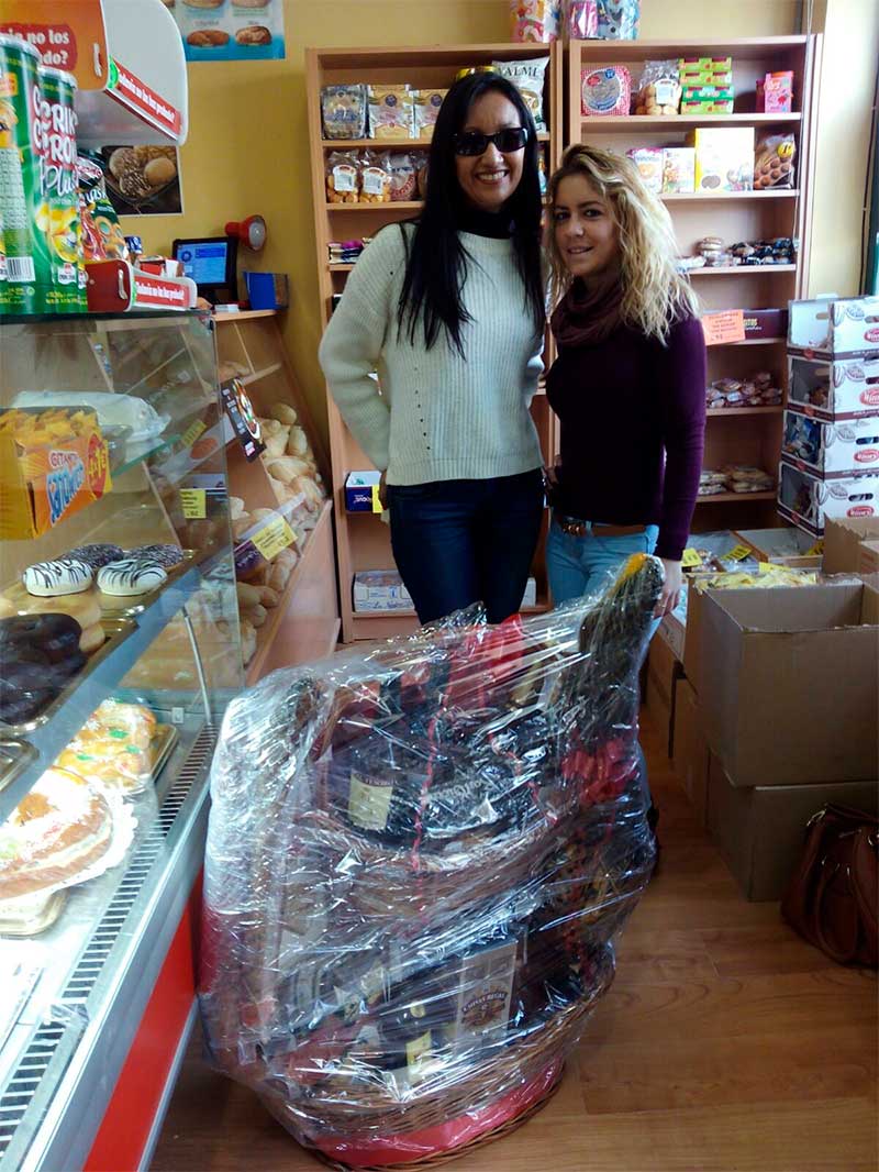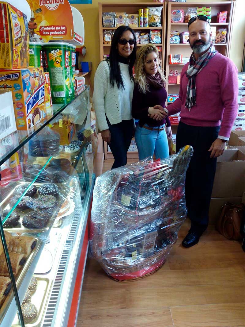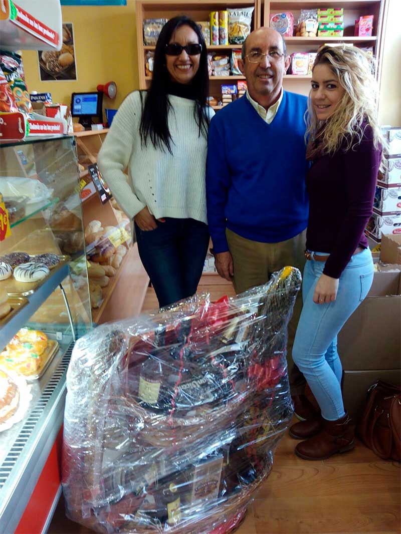 Nuestra clienta Desiree es la nueva ganadora de una de nuestras supercestas de Navidad, se hace entrega de la cesta por parte de nuestro comercial de zona en la tienda de la avenida Pio XII en Pilas, Sevilla.