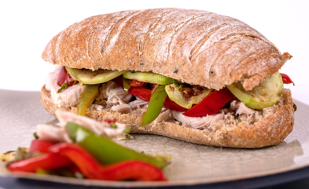 Nosotros seguimos con nuestra tradición bocadillera, y nos hemos preparado este Panvillo Quinoa con pechuga de pollo y verduras. ¡Tremendo!